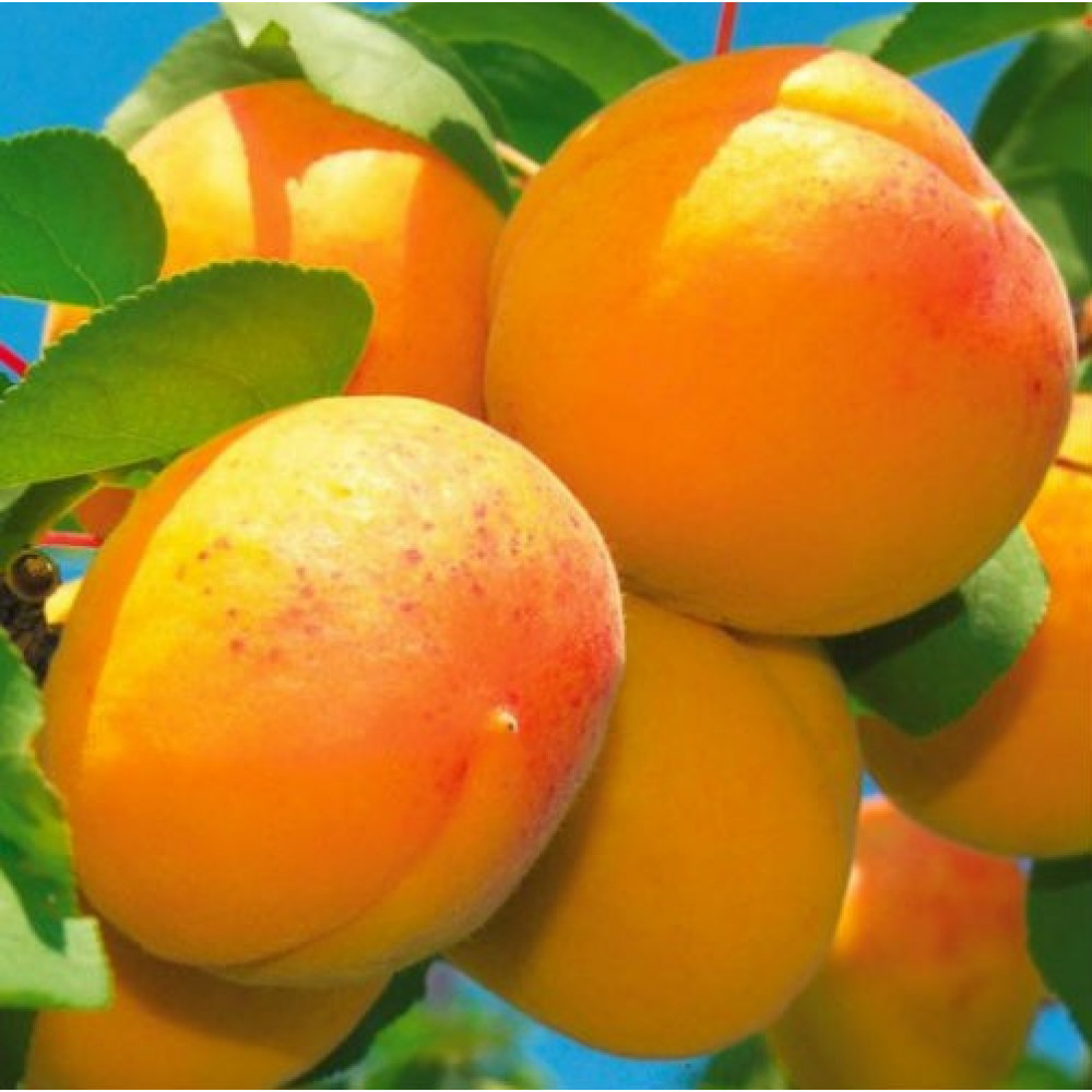 Плоды крупные, весом 40-60 грамм, светло-желтого цвета с розовым румянцев. Мякоть желтая, плотная, сладкая, без кислинки. Имеет слабый персиковый аромат.